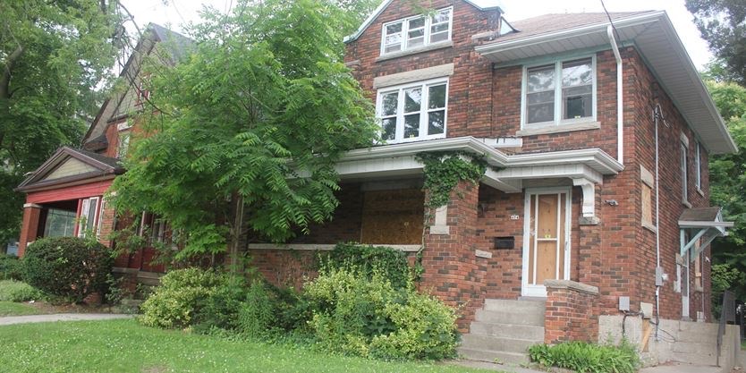 While Harry and Duretta Wolfhard lived across the street at 473 Queen south, Duretta bought this house as an income property in 1936. She sold the home in 1971. Many of their family members rented this house when they married. The house has been torn down for parking for the neighboring Schneider Haus Historic site.