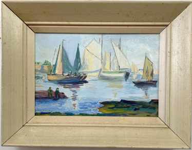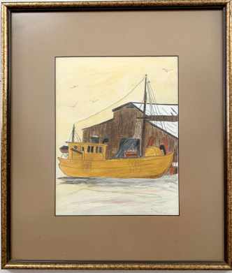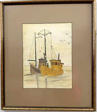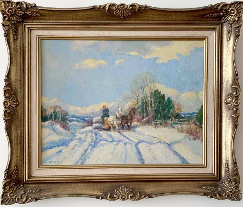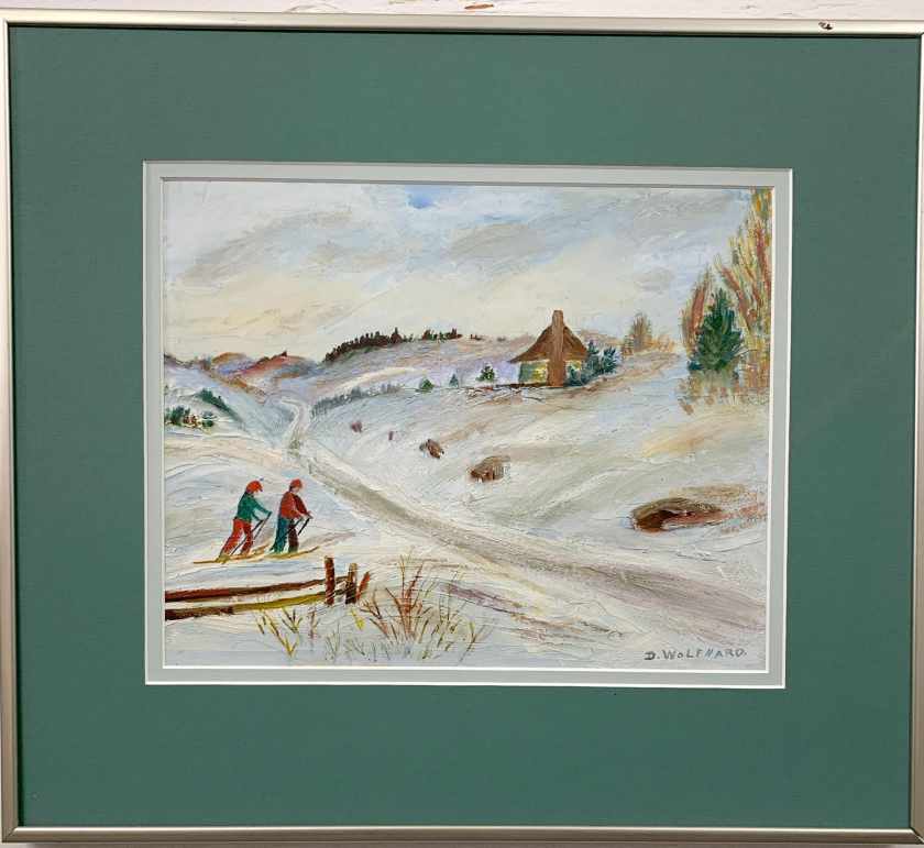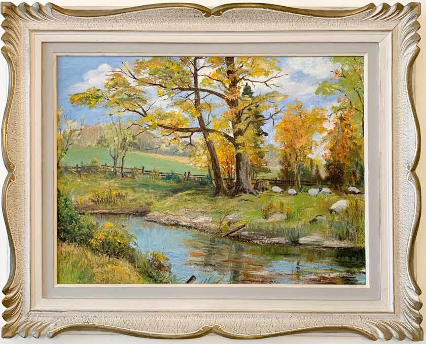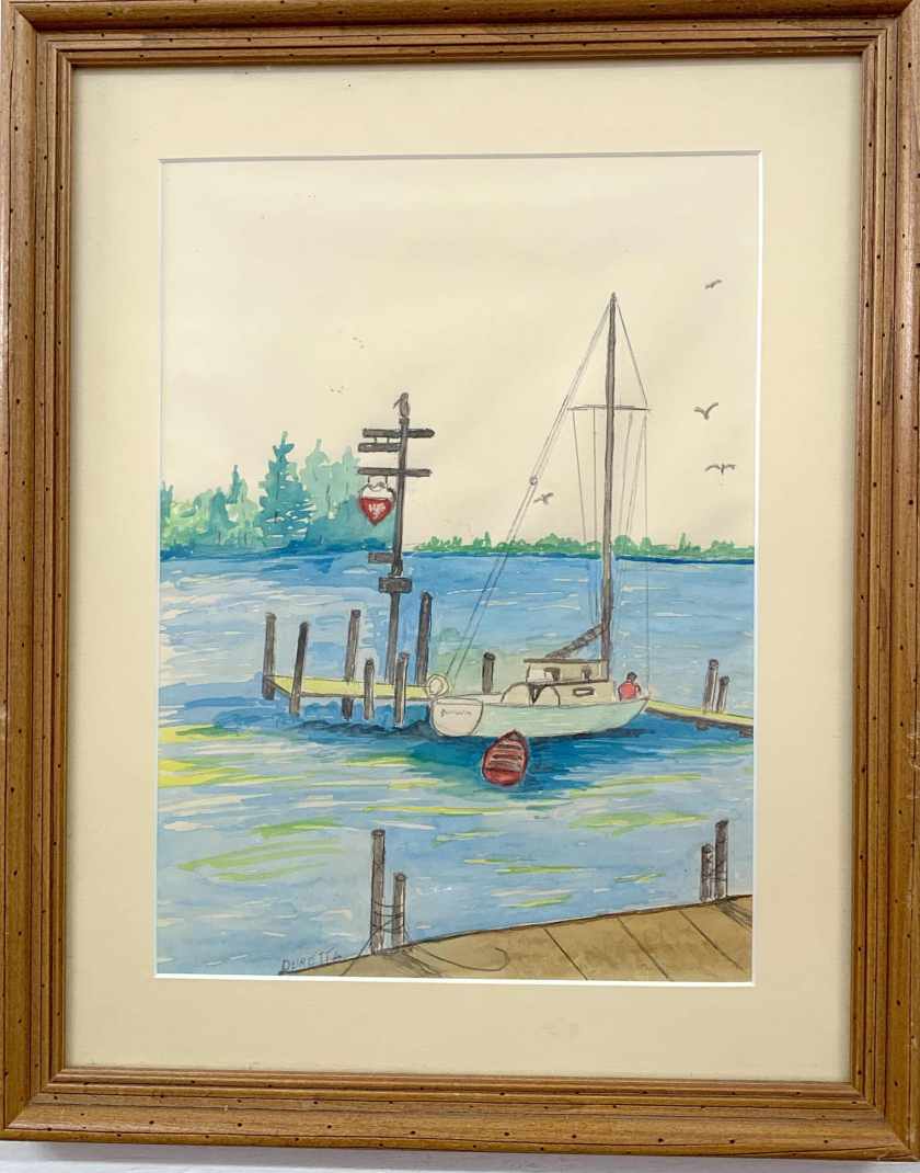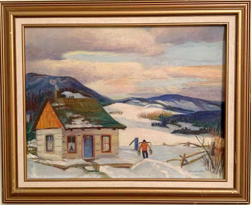 In the 90’s, Duretta gave us an oil painting for a house warming gift and would come over and clean it. She had learned how to clean oil paintings from the nuns at the Ville-Marie convent in Montreal with a sliced onion. As she was cleaning it, an image of a man in a canoe appeared that was hidden in years of dirt and grime.