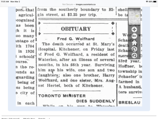 Frederick had the following children: Ethel Wolfhard, Frederick Henry Wolfhard, and Emma Wolfhard