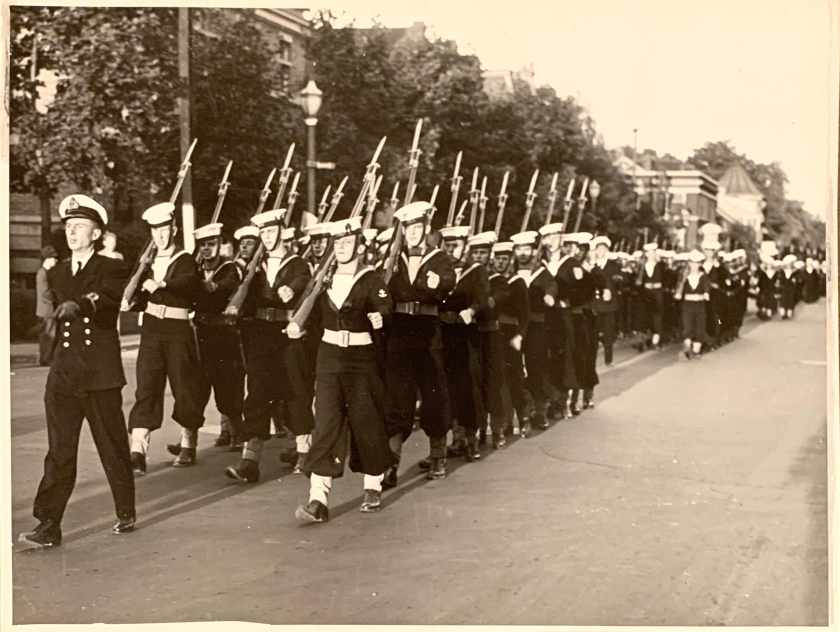 When the war started, Captain Allen’s warship was torpedoed near Africa. Upon Captain Jack’s death, Bill joined the Navy. First he was a gunnery instructor in Hamilton and then an Able Body Seaman on the H.M.S. Middlesex. While off the coast of Halifax, his radar screen blew up and he was temporarily blinded. He spent from January to July 1945 in a hospital in Halifax.