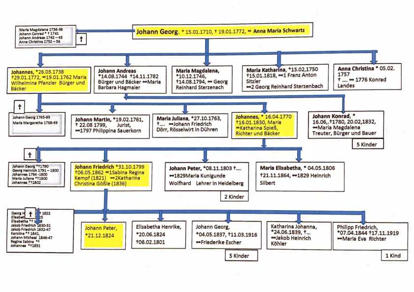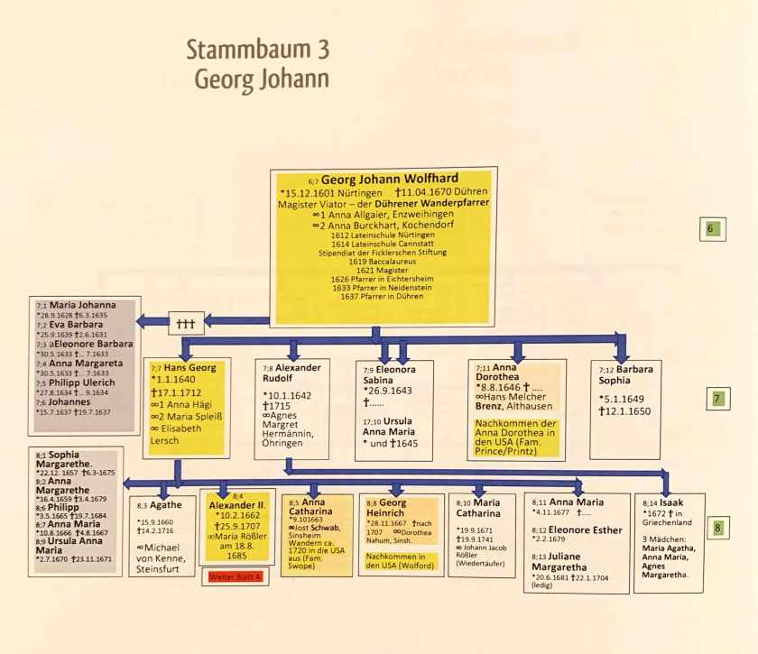 Johann Georg Wolfhard, highlighted in orange, born in 1710 was the Great Great Grandfather of Peter Wolfhard, 1824. Here is an account of life in Germany at the time, courtesy of Manfred Wolfhard- Life in 1719