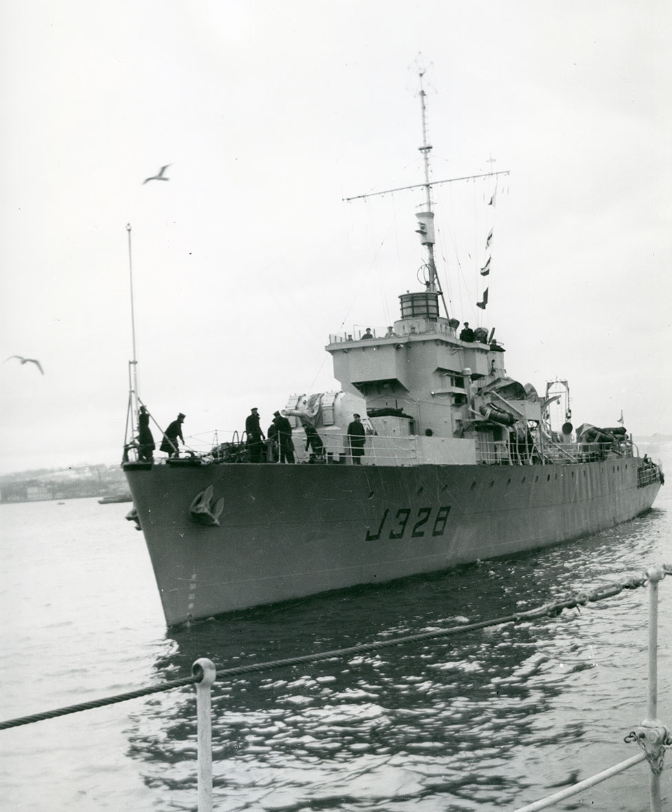 Bill then enlisted in the Navy in October 1942. He attended Basic Training in December and was stationed in Hamilton and then Halifax as an instructor as well as a radar instructor. He was then posted to the H.M.C.S Middlesex in July, 1944 as an Able Seaman, Radar Operator 3rd Class. The Middlesex was a mine sweeper used in World War II for escort duties in the North Atlantic. He was discharged in August 1945